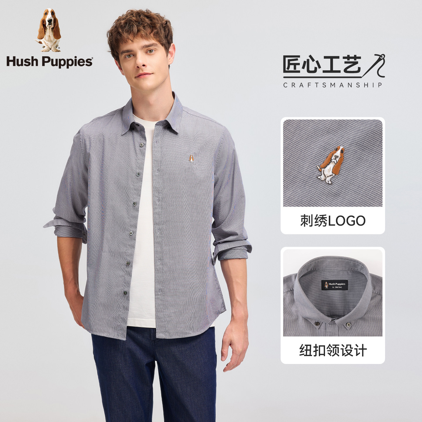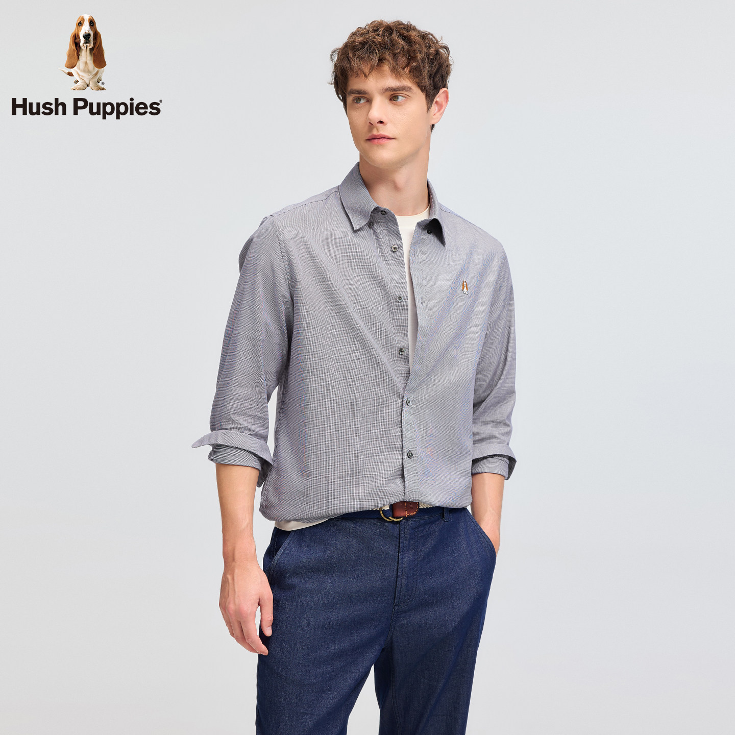 【优质长绒棉】暇步士男装2025秋季新款经典千鸟格纽扣领休闲衬衫