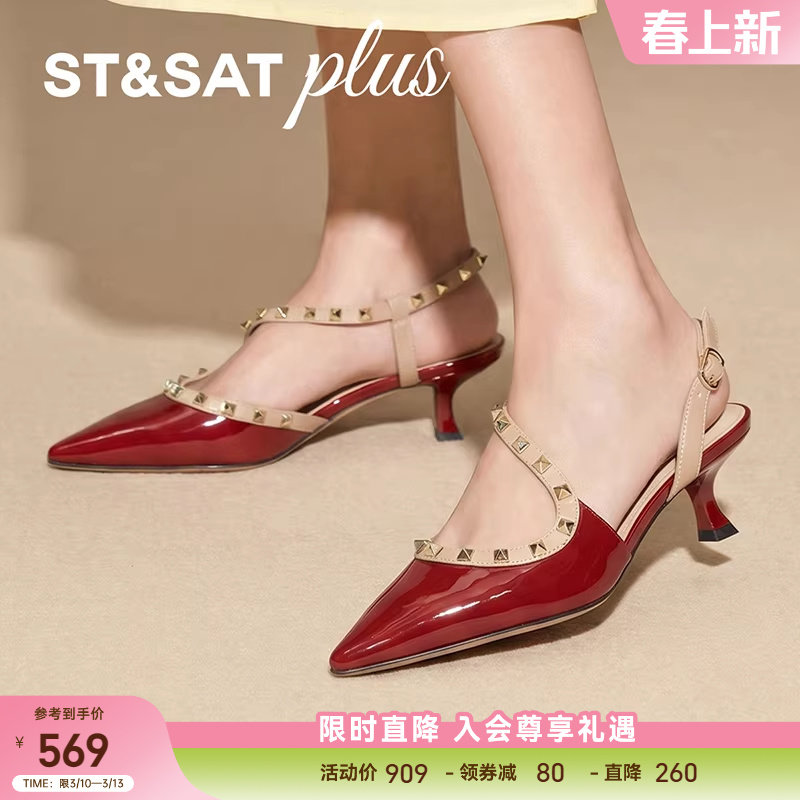 星期六一字带包头凉鞋春季新款细跟女鞋法式时装凉鞋女SSE1114012