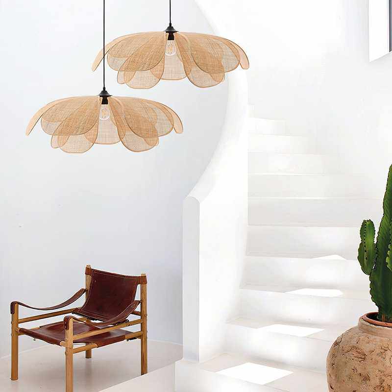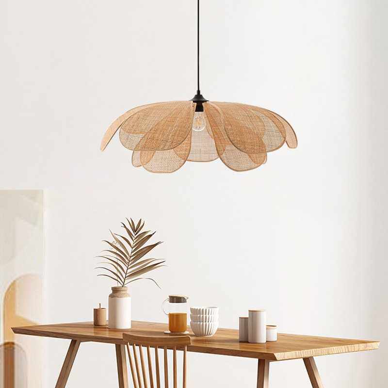 日式客厅藤编吊灯 餐厅卧室床头装饰led灯饰民宿禅意茶室花瓣灯具