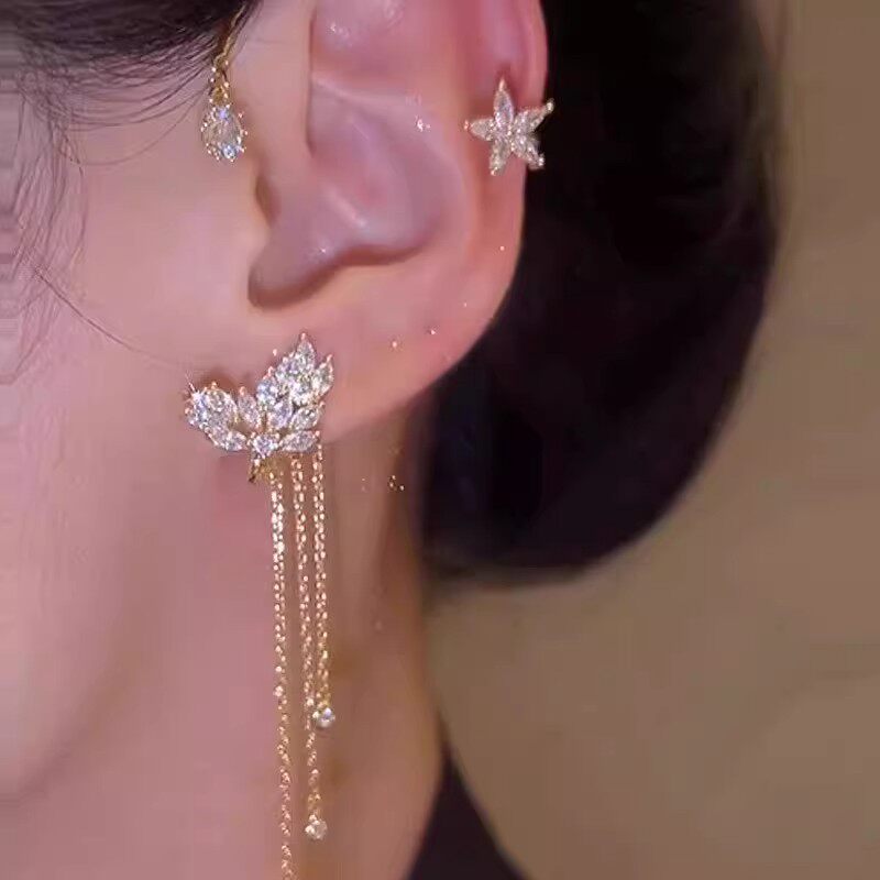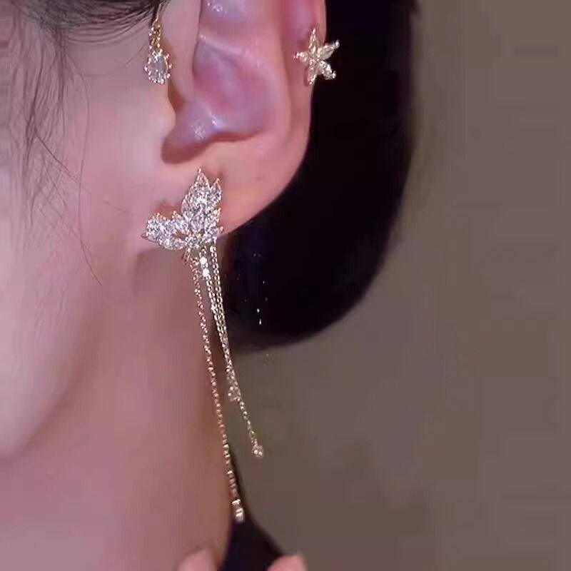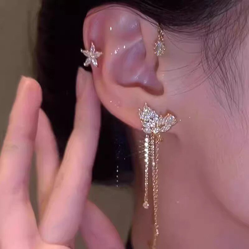 耳骨夹月溅耳夹无耳洞女耳挂耳环轻奢高级感方耳饰流苏蝴蝶精灵