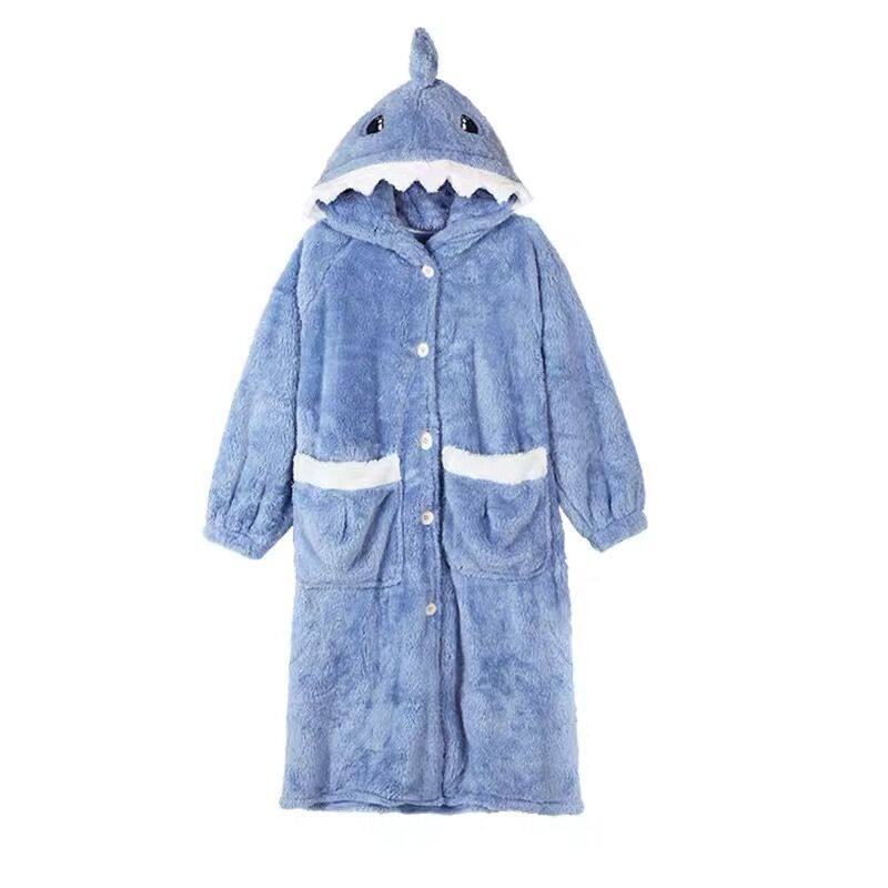浪莎睡衣女秋冬季珊瑚绒毛绒连体家居服睡袍2025新款可爱鲨鱼蓝色