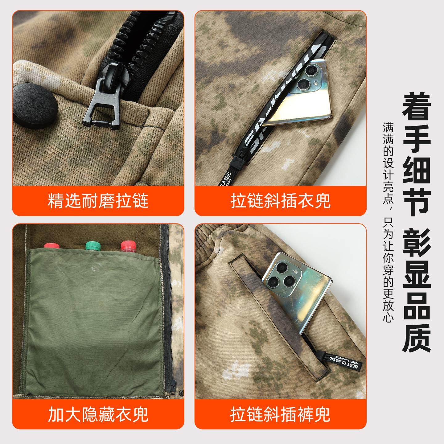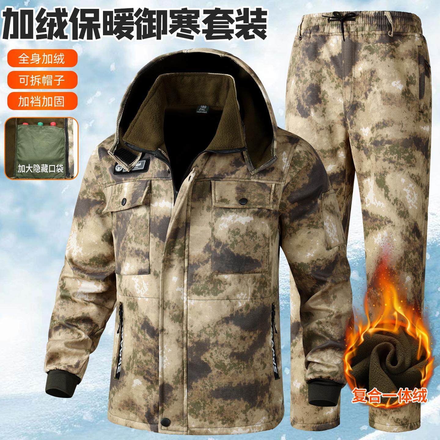 秋冬季新款工作服套装男加绒加厚防水防寒保暖耐磨迷彩劳保服防风