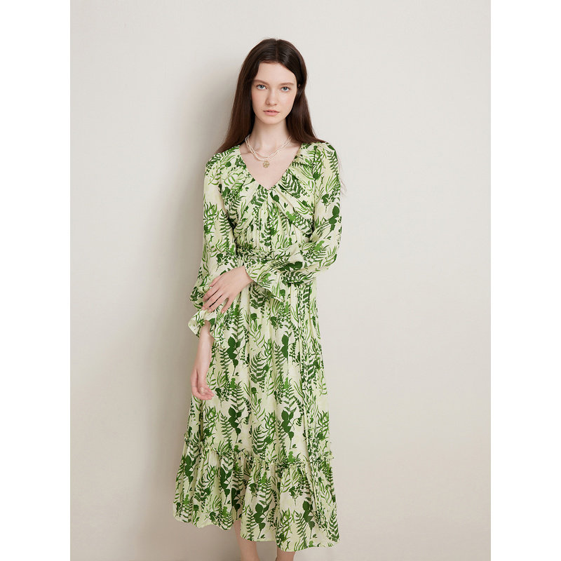 【真丝系列】Goodland美地春季桑蚕丝诗意碎花连衣裙