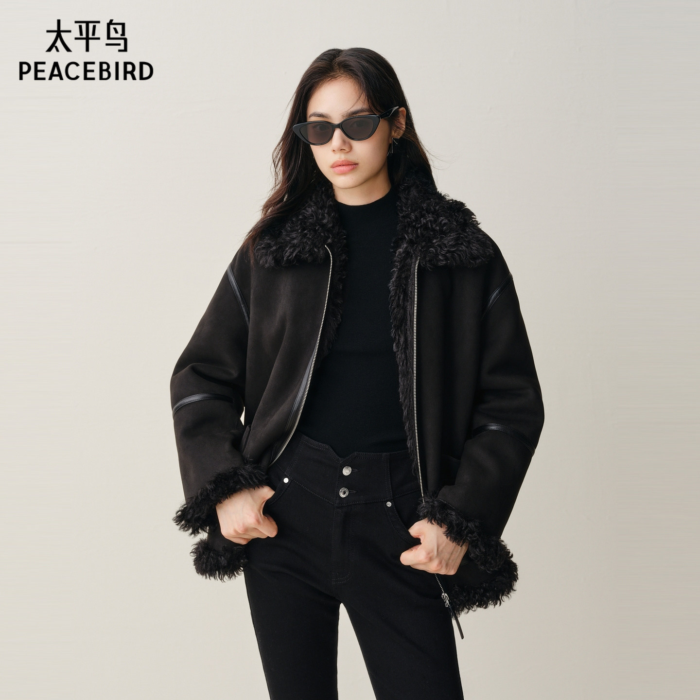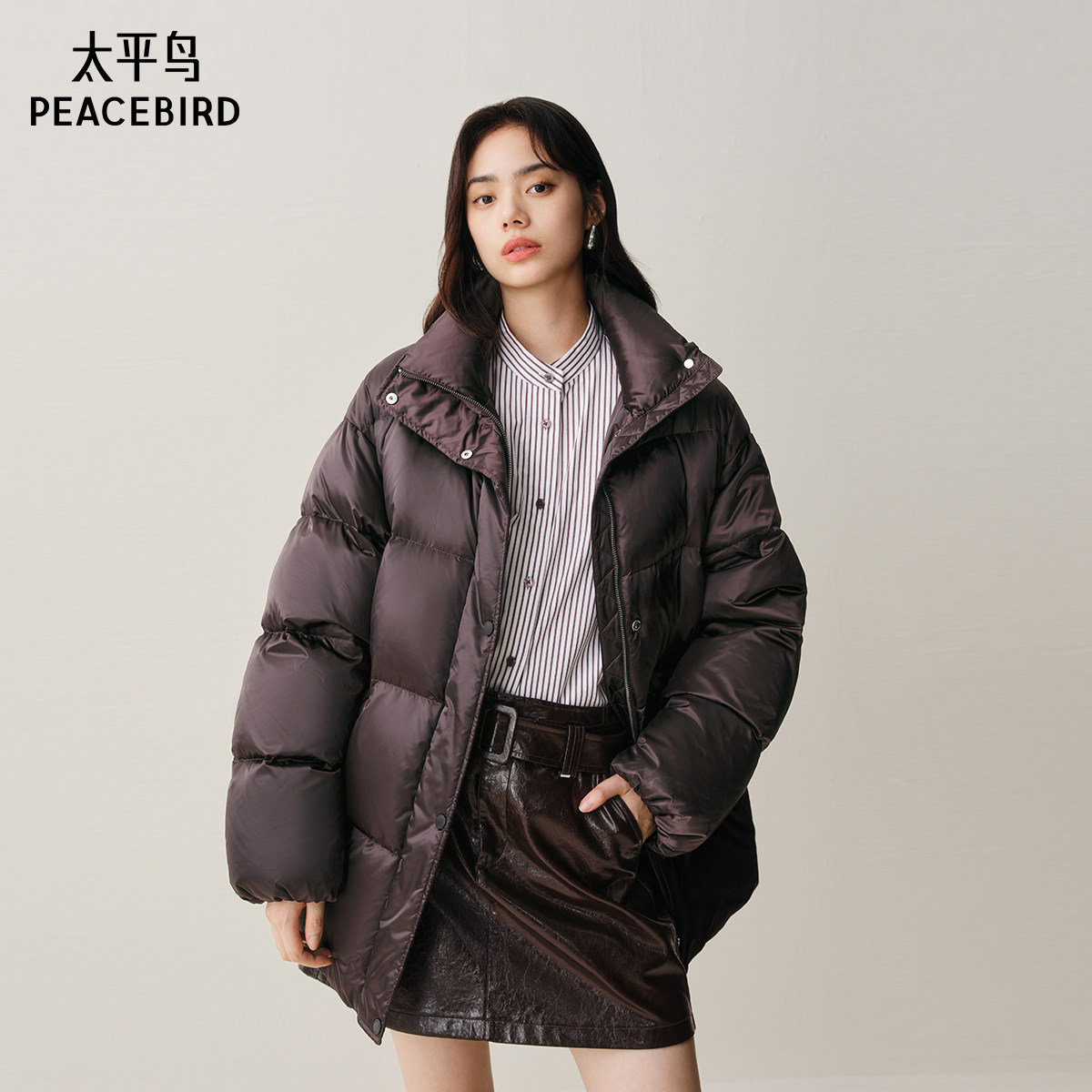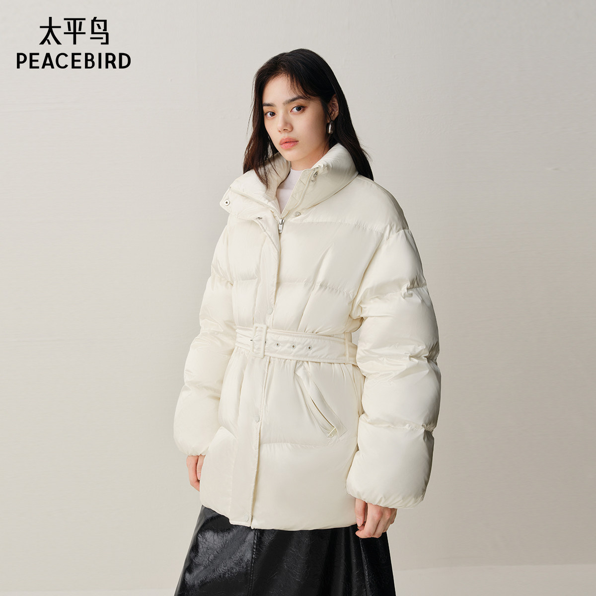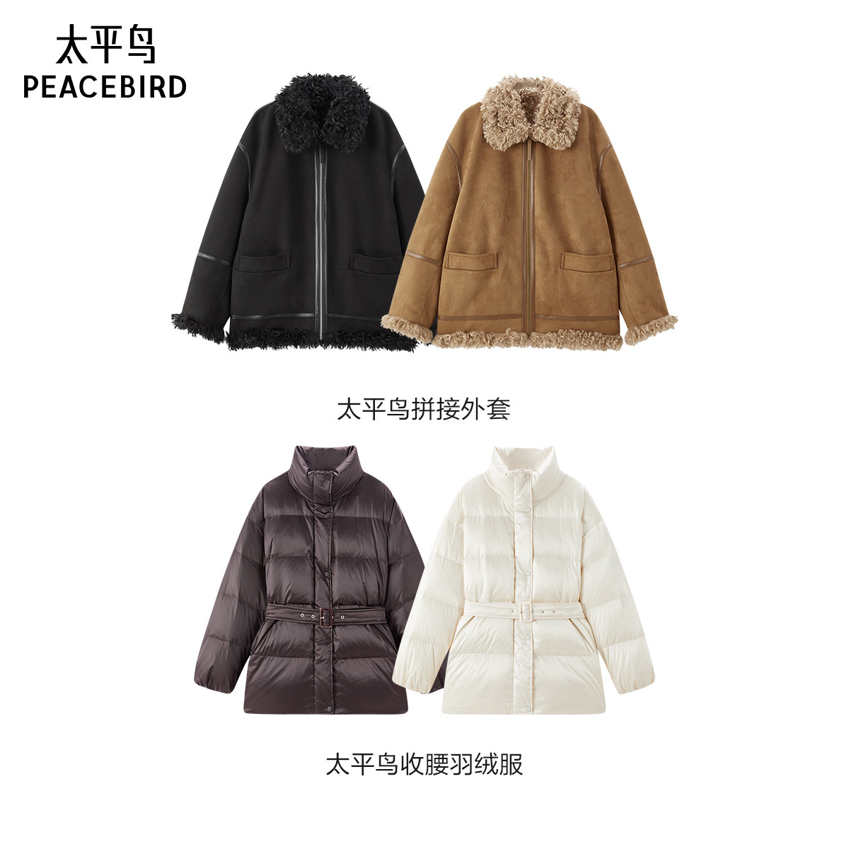 【达播专属】太平鸟拼接机车服短外套收腰羽绒服