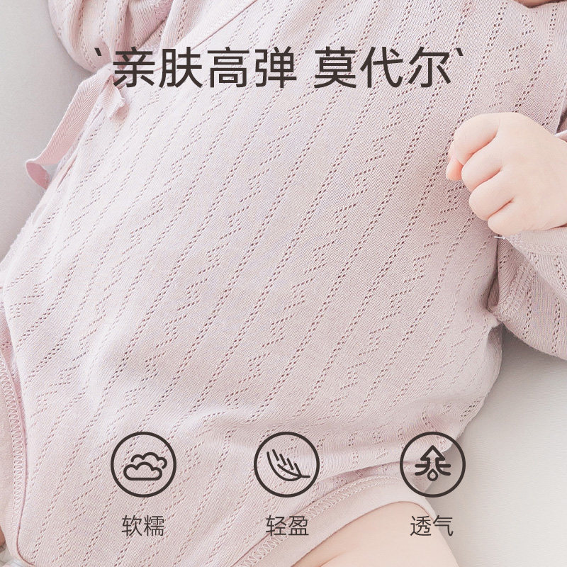 【莫代尔】新生儿连体包屁衣夏季薄款宝宝长袖三角哈衣婴幼儿哈衣