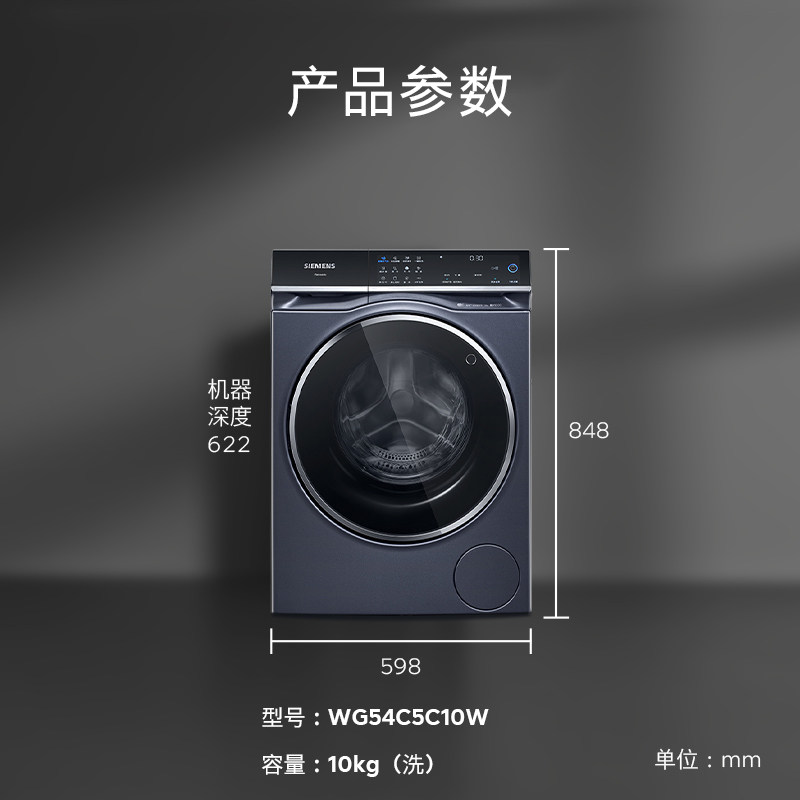 【蓝宝石超氧】西门子10公斤滚简家用全自动洗衣机官方变频5C10