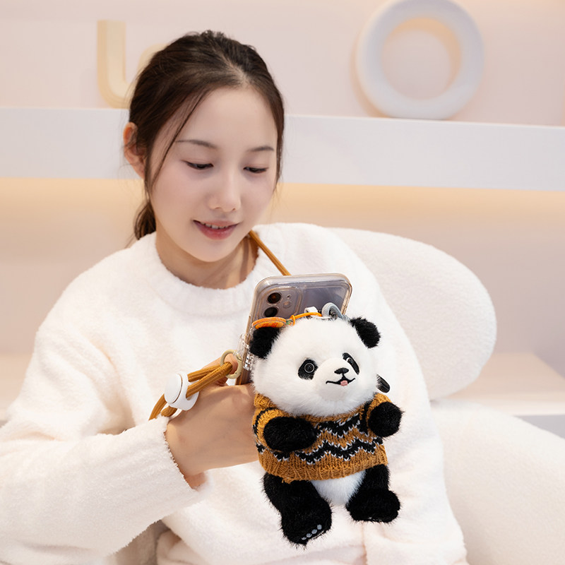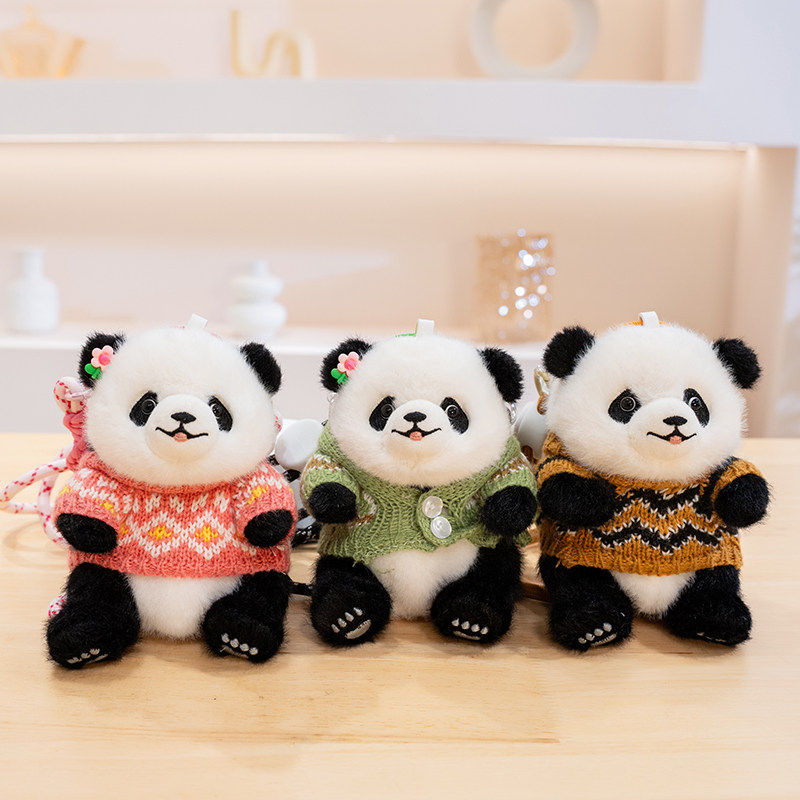仿真熊猫挂件公仔毛绒玩具可爱毛衣熊猫玩偶布娃娃手机夹女生礼物