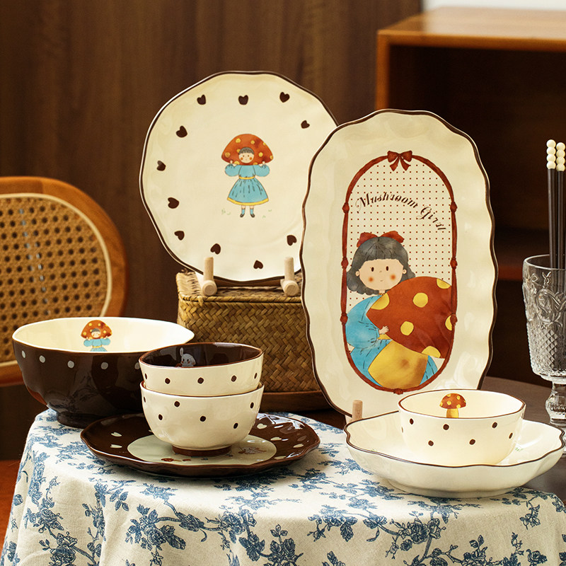 泽滕家盘子可爱超萌儿童餐具装汤炒菜深碟情侣乔迁搬家送礼物套碗