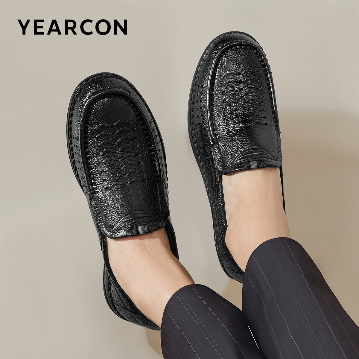 意尔康男鞋夏季真皮商务休闲皮鞋男士英伦风皮凉鞋透气软底乐福鞋