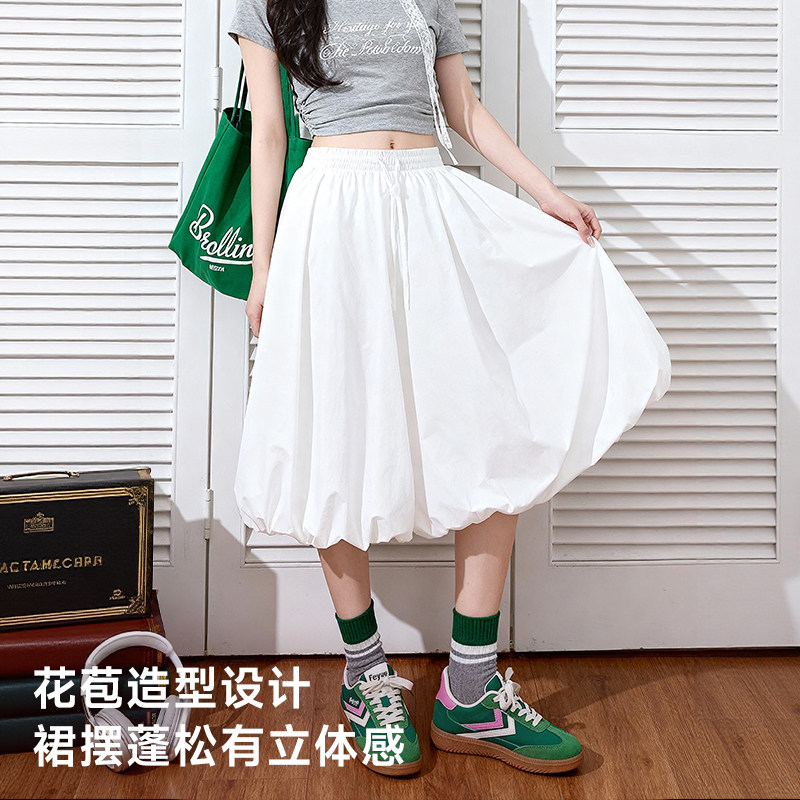 唐狮官方黑色花苞半身长裙女2026新款春秋款高腰a字百搭中长裙VB