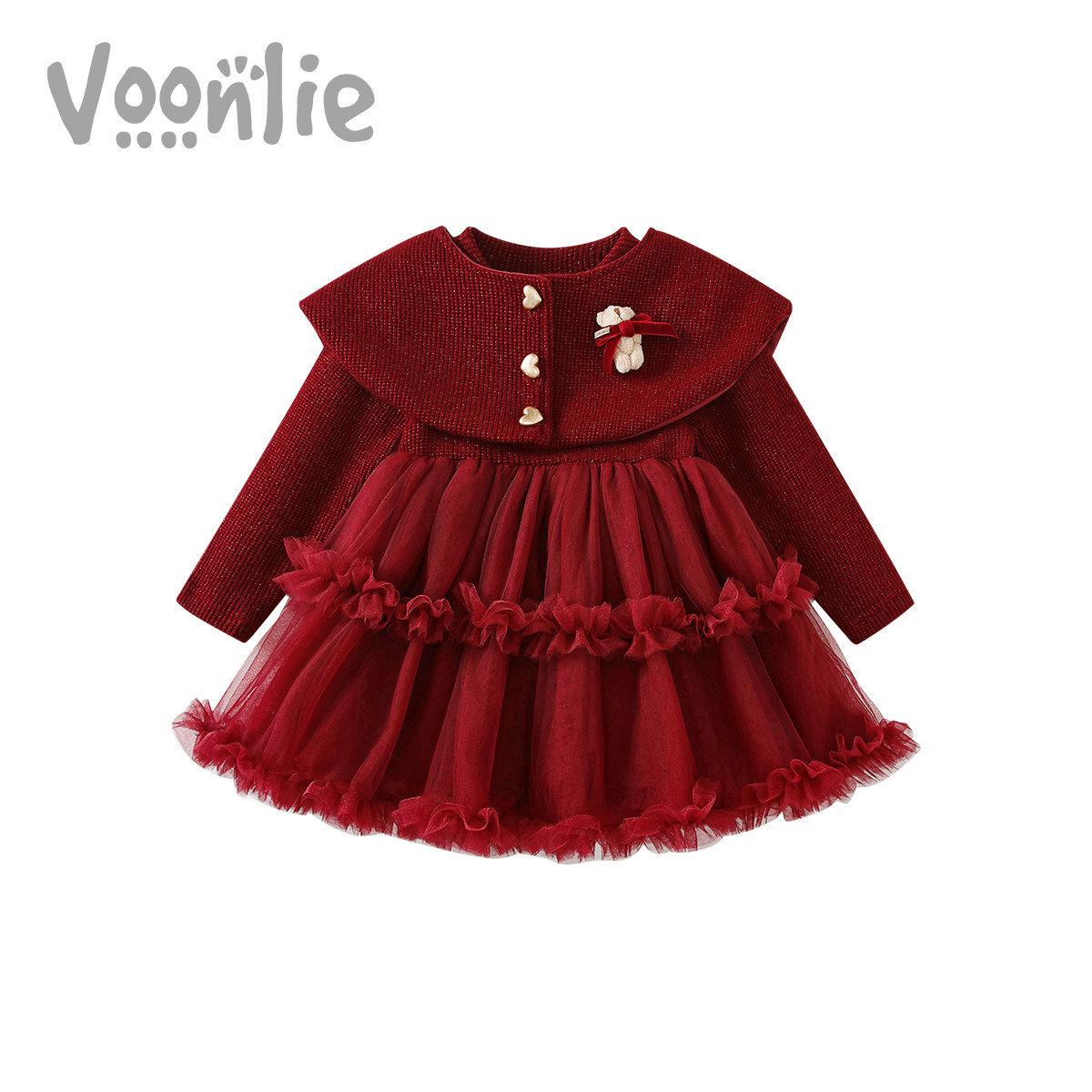 [2026新年款]女童红色连衣裙宝宝拜年服秋冬加绒蓬蓬纱裙儿童裙子