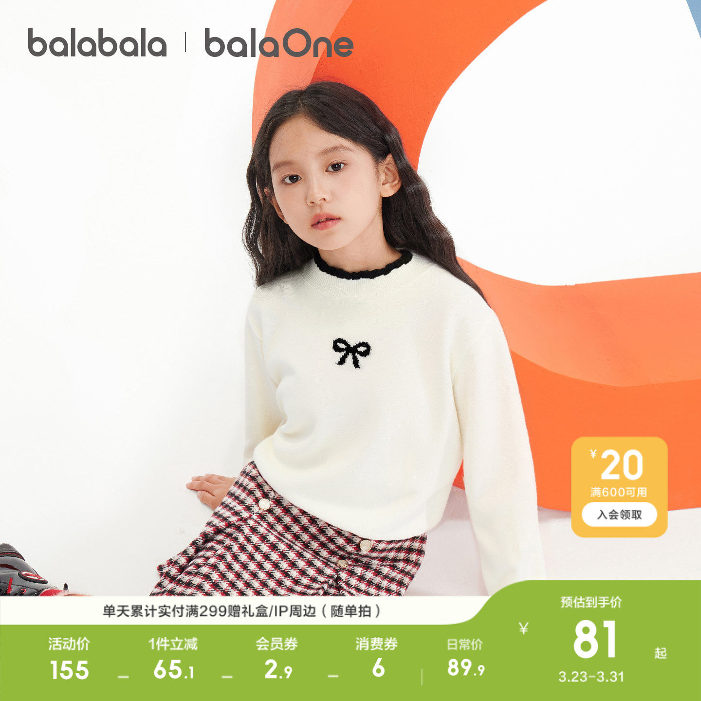 巴拉巴拉童装女童毛衣儿童2026新款秋冬装宝宝甜美针织衫学院风