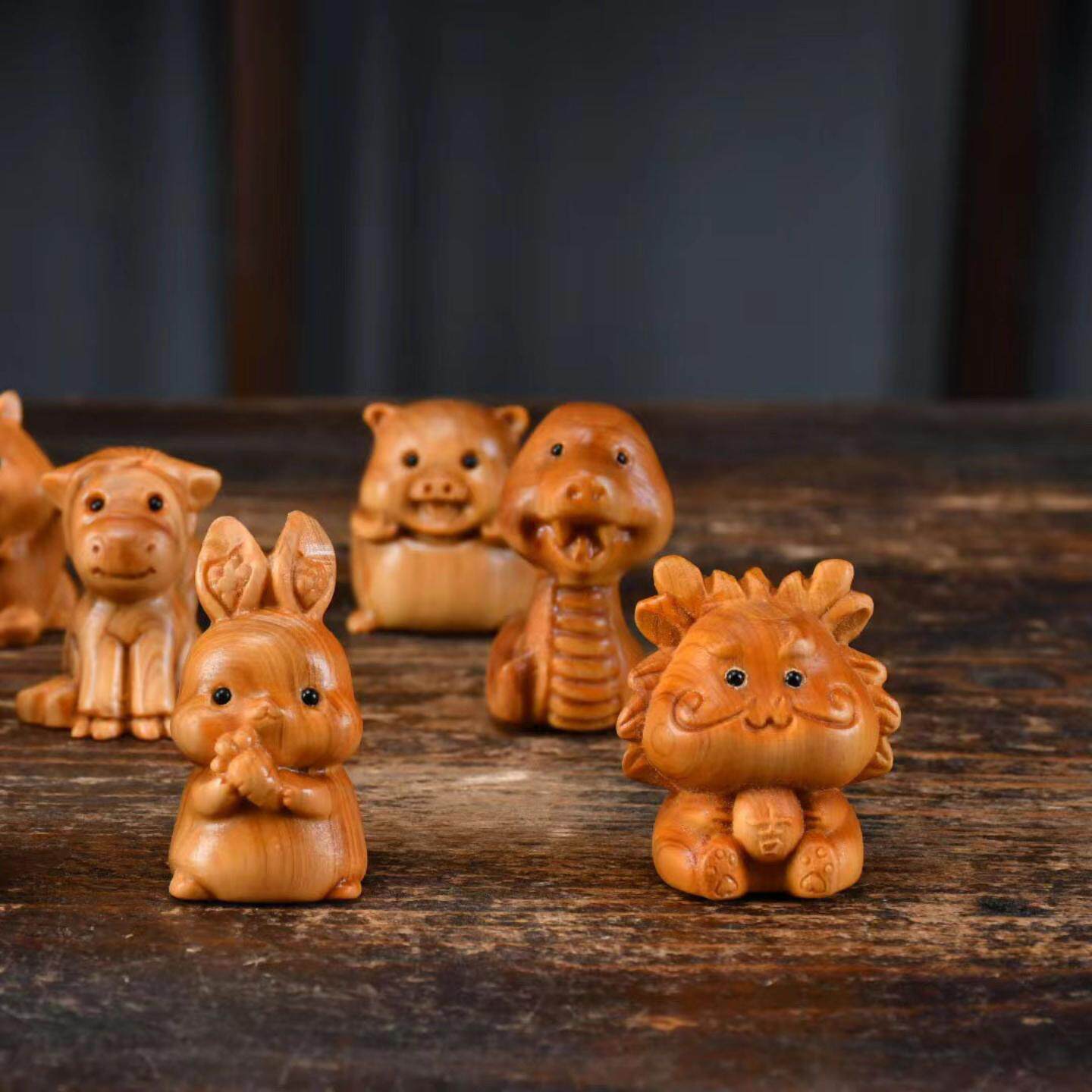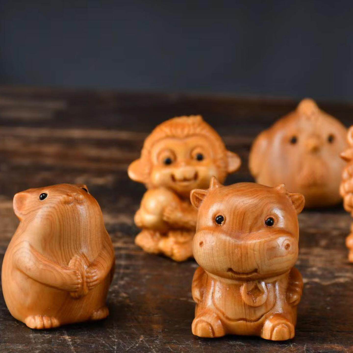 崖柏工艺品木雕十二生肖手把件全套挂件鼠牛景区网红款治愈系文玩