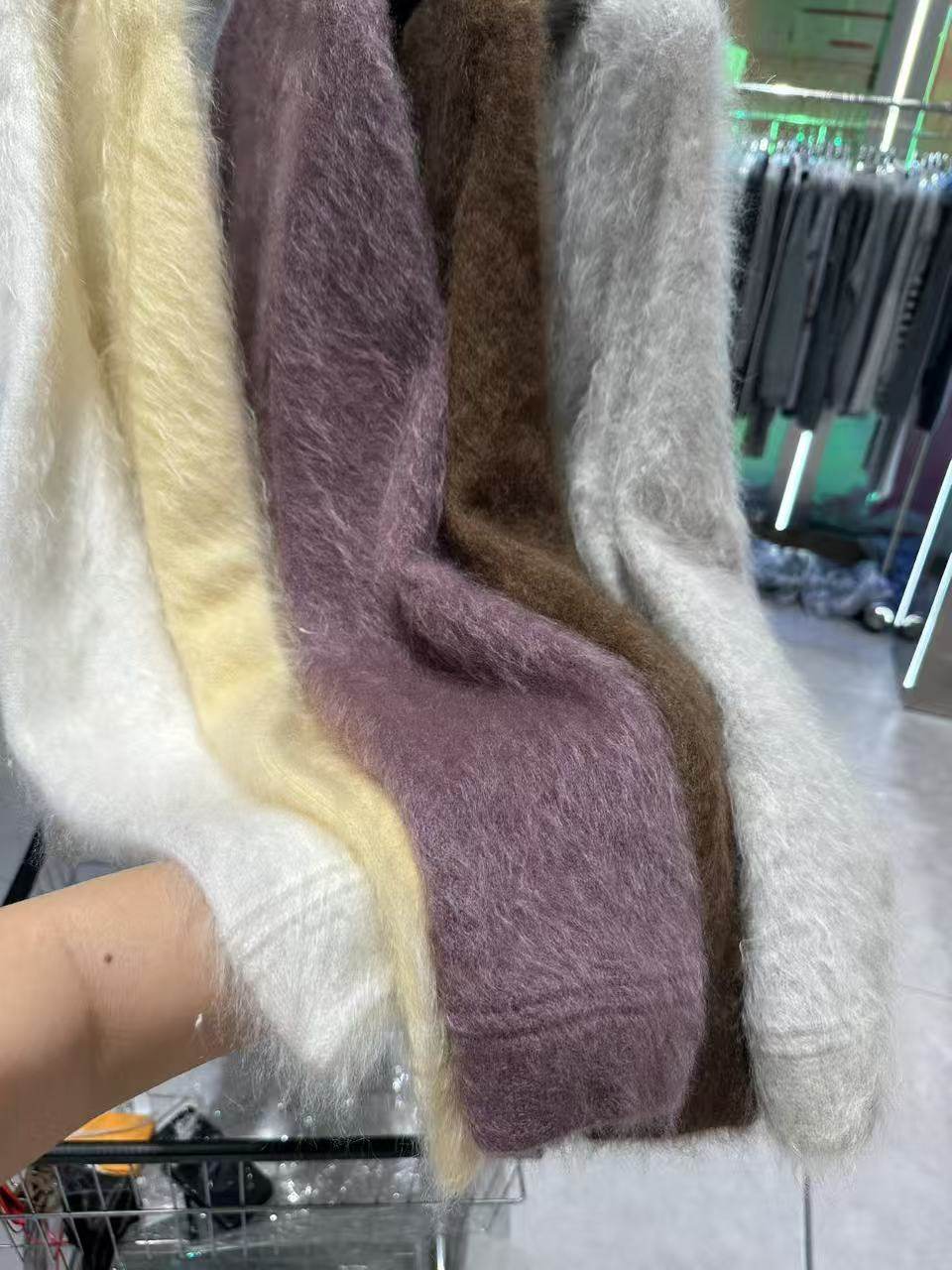 COCOBELLA花纱毛衣女秋冬灰色上衣休闲长绒针织衫外套MZ3218