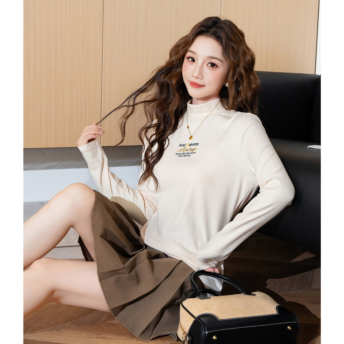 唐狮新款春季女内搭打底衫半高领小众长袖修身上衣韩版白色TD