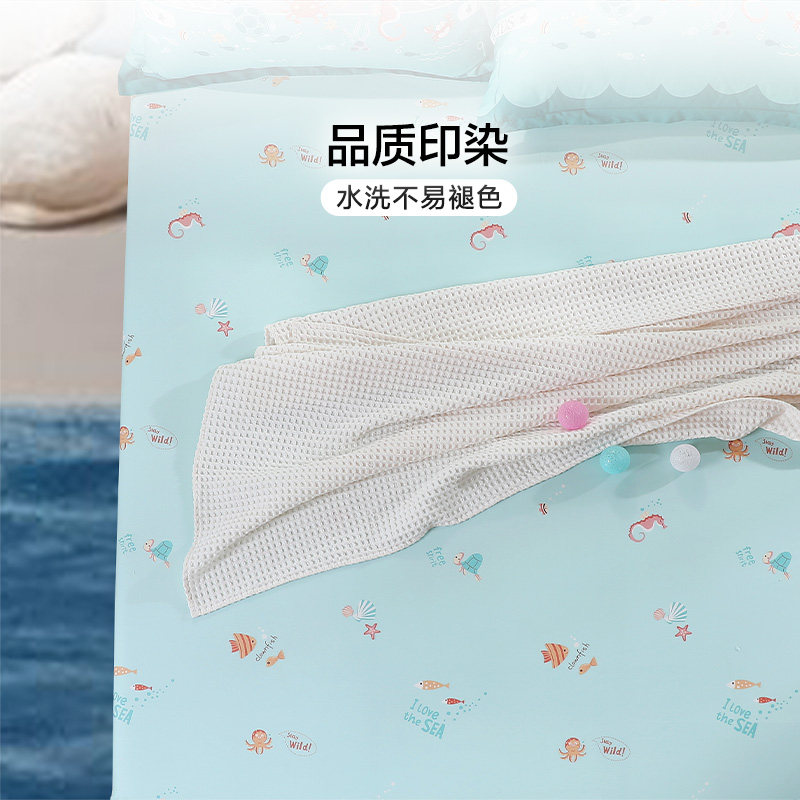 富安娜纯棉A类卡通单件床笠隔脏全棉防滑儿童床罩席梦思床套罩