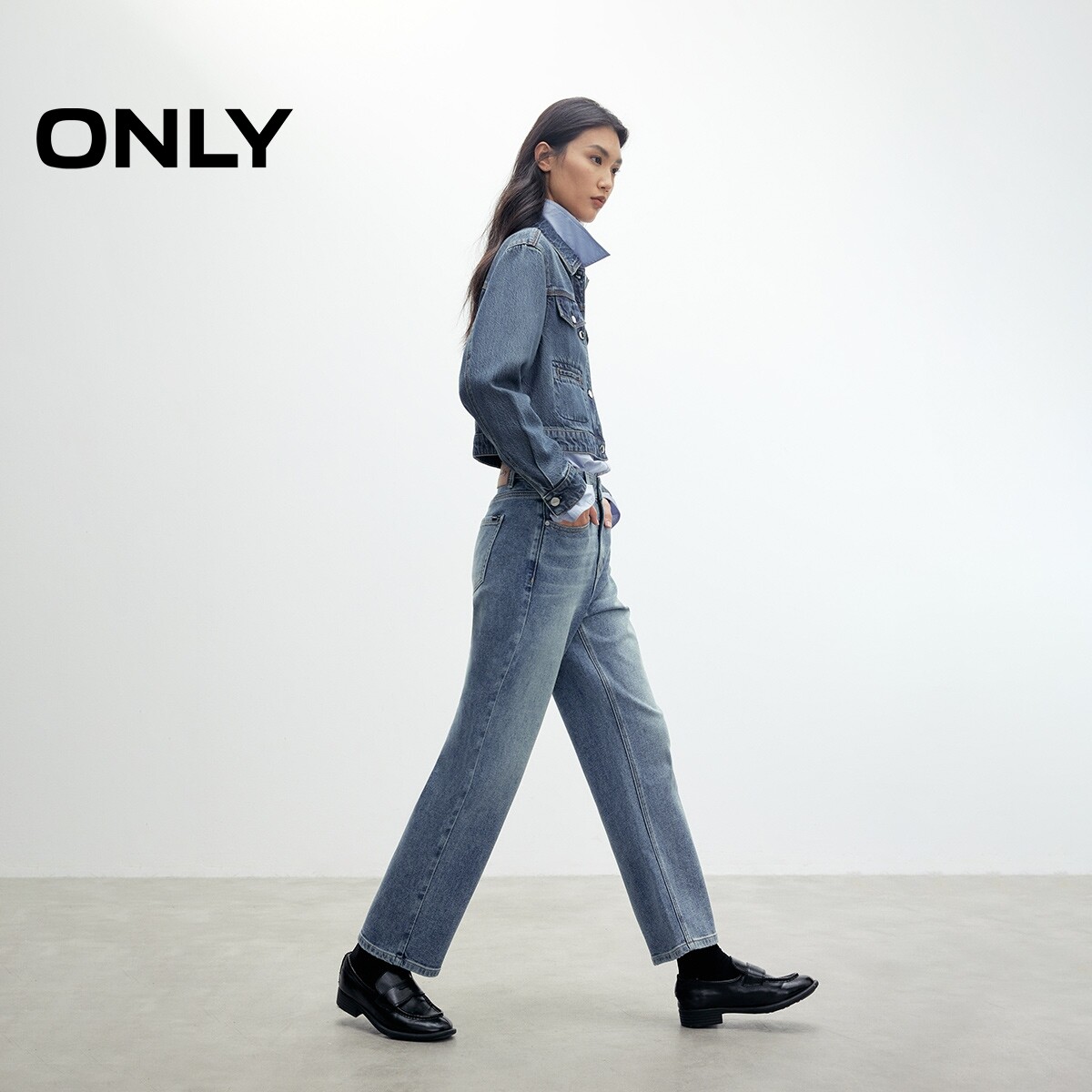 【ONLY奥莱】春季提臀约克线剪裁设计男友裤九分裤高腰牛仔裤女