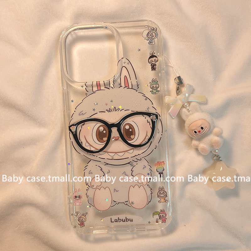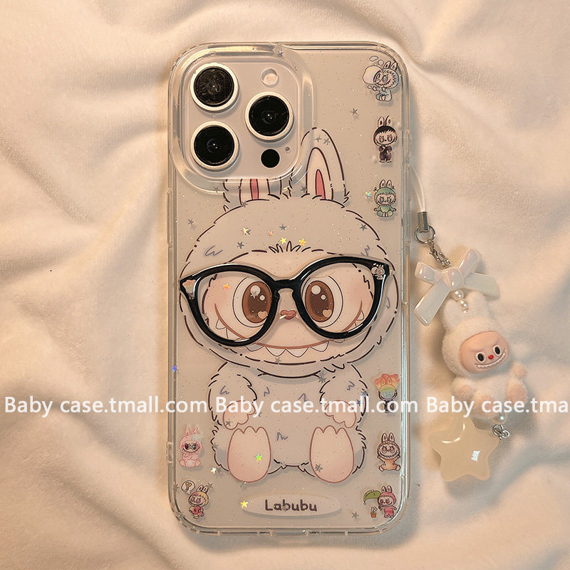 日韩闪粉星星立体眼镜拉布布适用苹果17promax手机壳iPhone16pro新款15可爱17网红13pro超火14pm女16全包透明