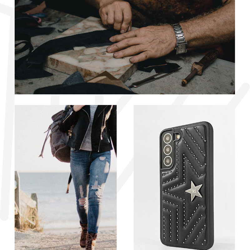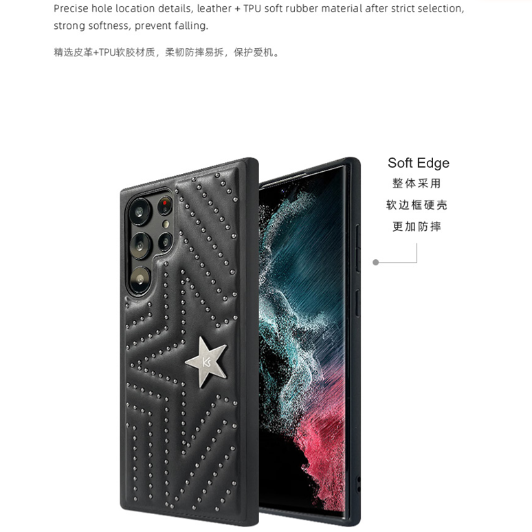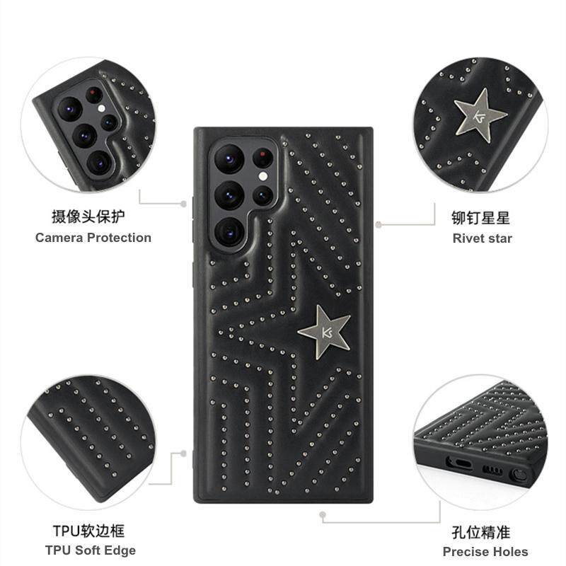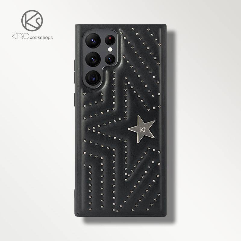 KASO金属铆钉星星皮革手机壳 三星S25Ultra时尚皮革保护套S24Ultra手机壳S23U手机全包保护壳S22U