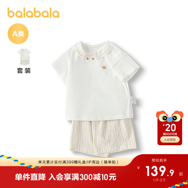 巴拉巴拉童装宝宝短袖套装夏装男童两件套2025新款精致潮时尚百搭