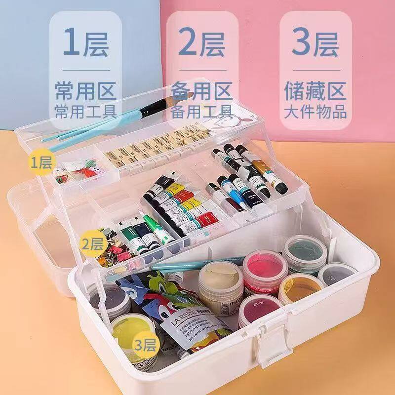 美术生工具箱大号颜料收纳箱多功能大容量三层收纳盒艺考专用美甲师外出美甲美容用化妆品首饰盒家用医药箱