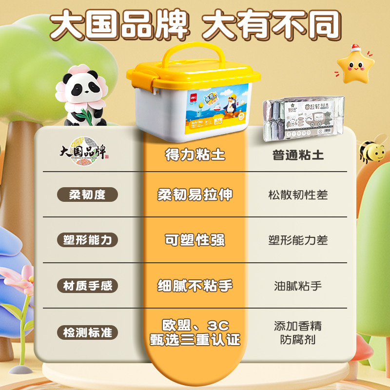 得力超轻粘土彩泥儿童橡皮泥黏土幼儿园专用益智玩具太空泥起泡胶彩泥无毒儿童过家家食品玩具级24色儿童玩具