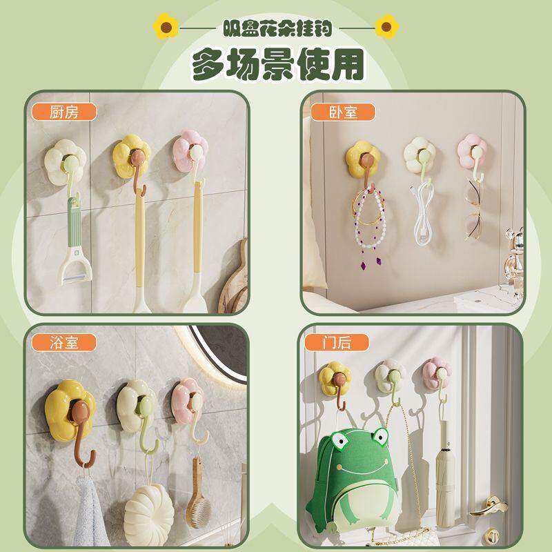 花朵吸盘挂钩免打孔强力承重家用浴室卫生间门后挂钩真空无痕粘钩