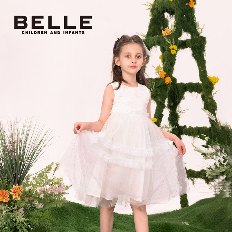 【清仓】百丽童装女童夏季宝宝连衣裙小女孩艾莎公主裙儿童网纱裙