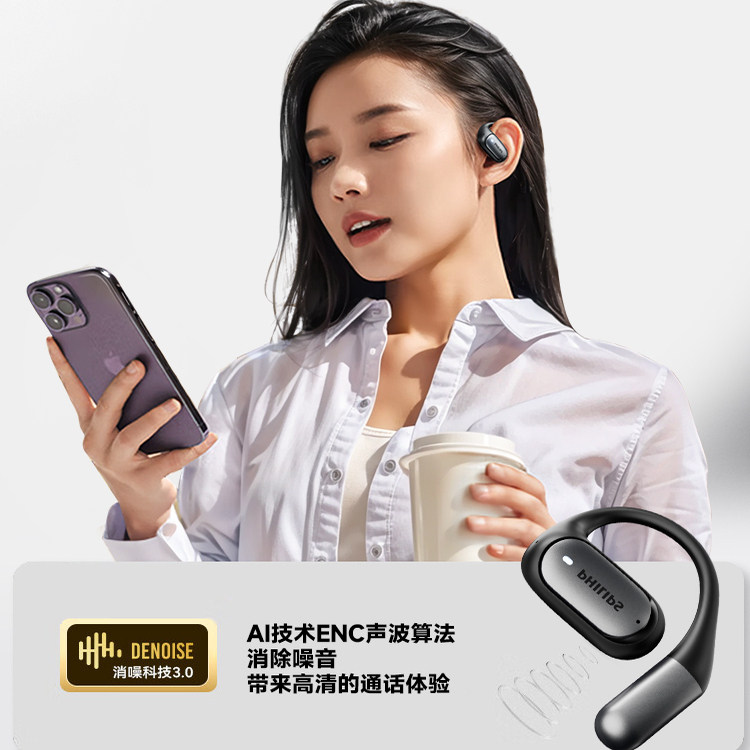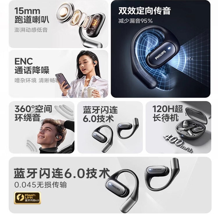 飞利浦蓝牙耳机无线挂耳式不入耳开放式运动跑步降噪耳机2026新款