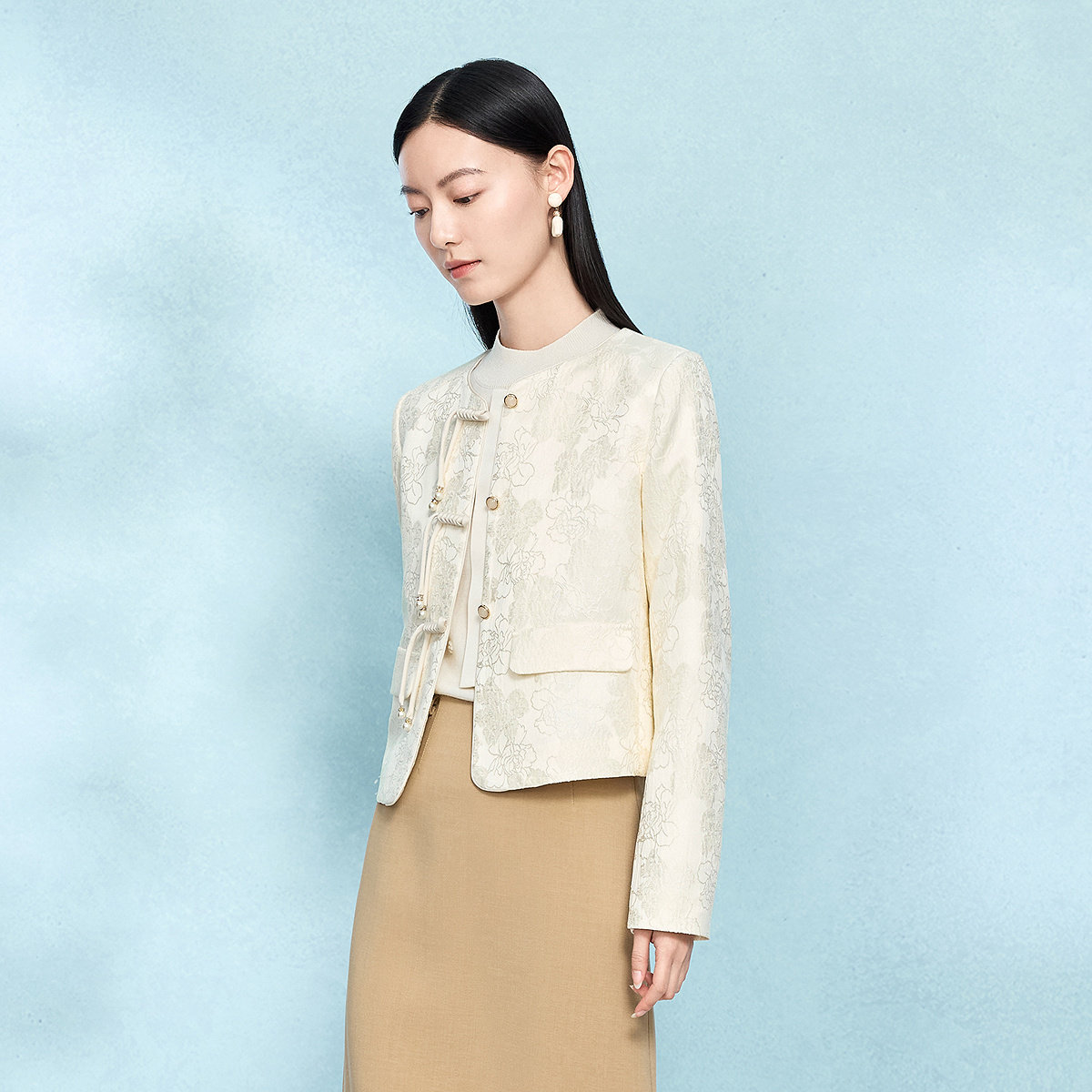 【新中式】菲妮迪新中式短外套2025春季新款国风气质盘扣上衣女