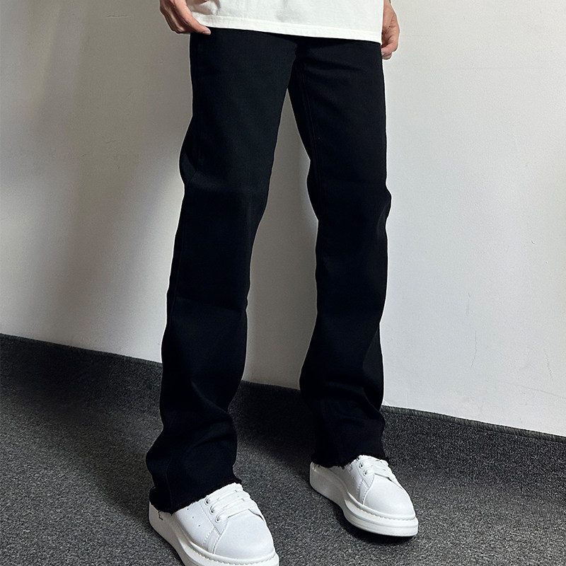 HELIPORT停机坪 裤脚毛边破坏牛仔裤潮牌男女高街微喇叭直筒裤