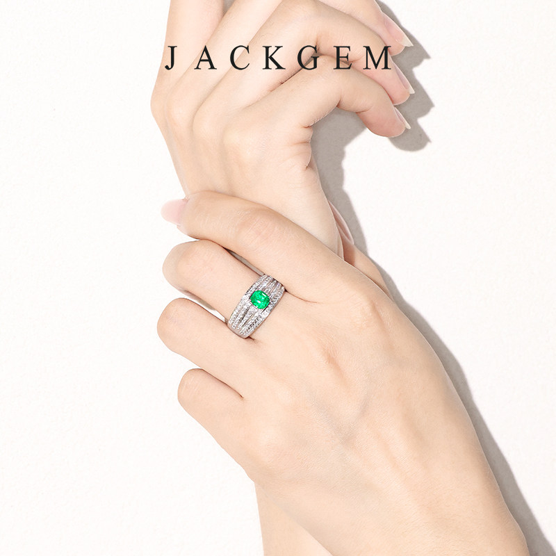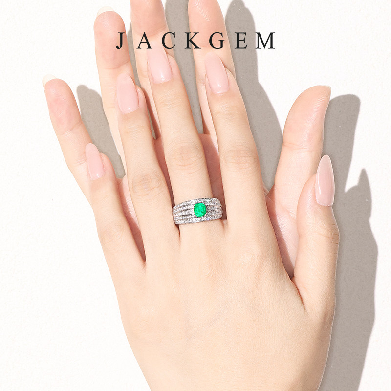 祖母绿戒指18k金钻石戒指女绿色宝石戒指绿钻戒指钻戒高级珠宝N8