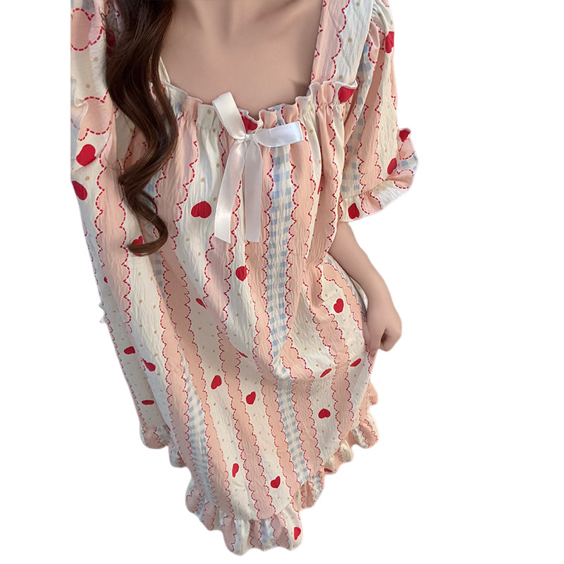公主风睡裙女夏季带胸垫可拆卸云朵棉绸短袖睡衣少女生甜美家居服