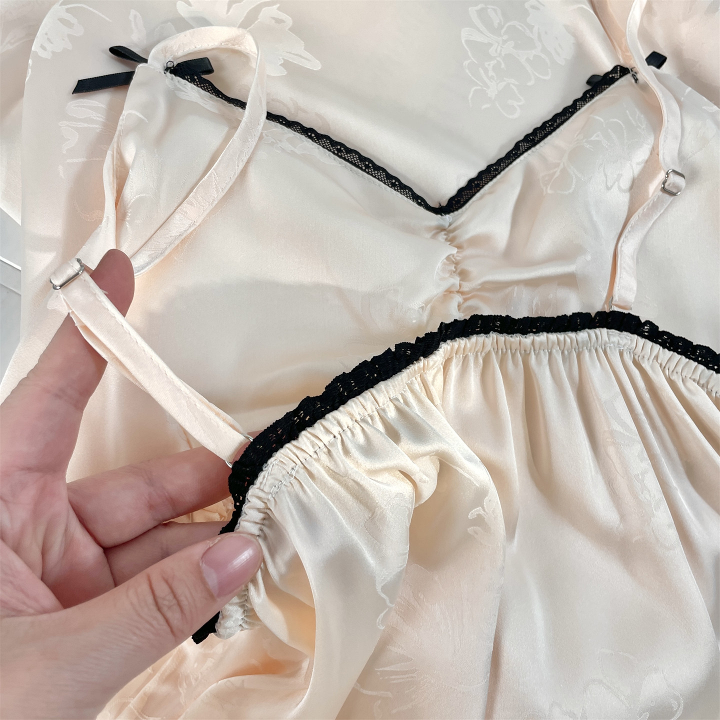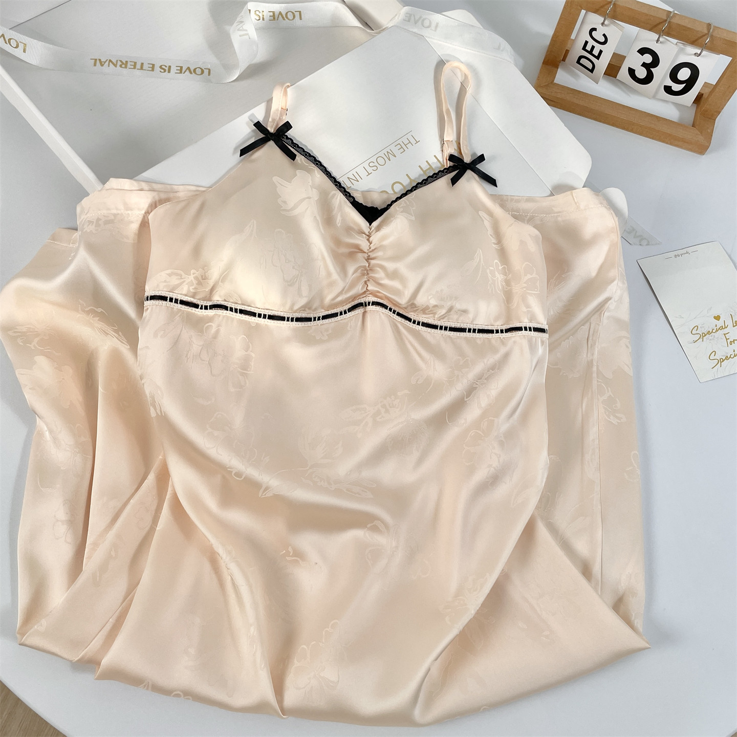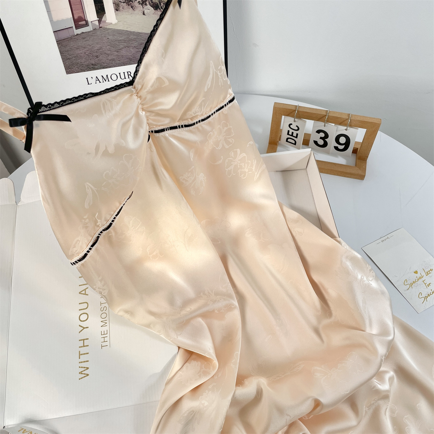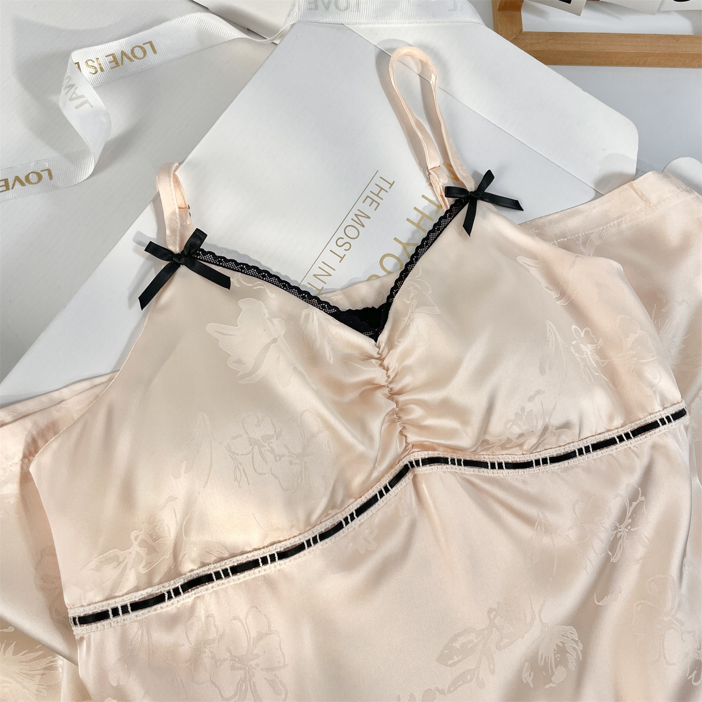 都市丽人睡裙冰丝吊带蕾丝春夏新款凉感纯欲风带胸垫睡衣女礼盒装