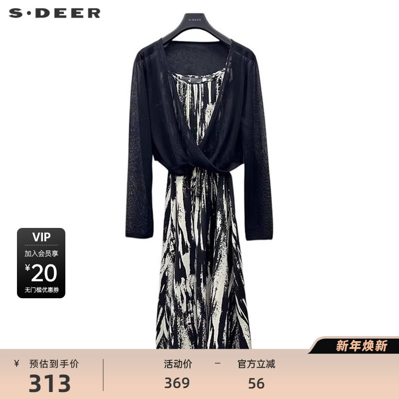 sdeer圣迪奥女装优雅水墨晕染针织衫吊带裙套装S242Z1443