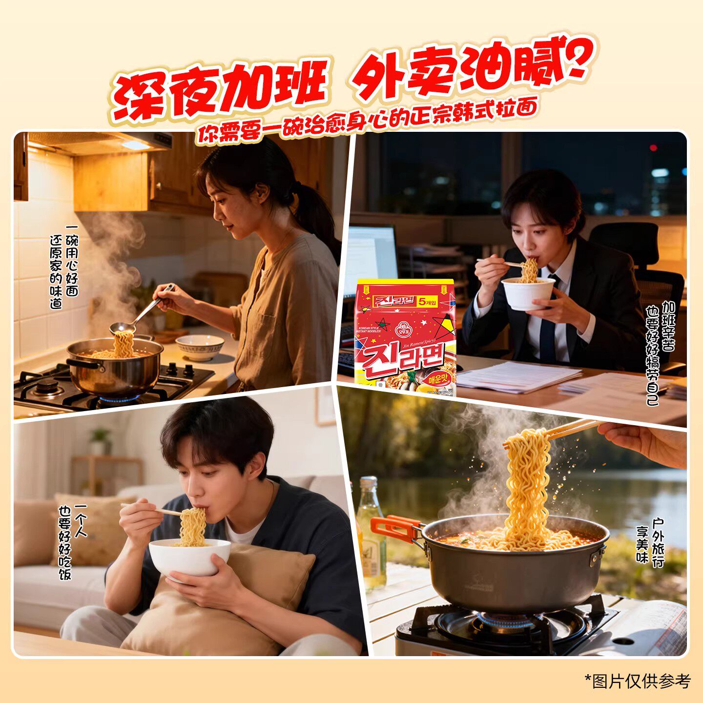 不倒翁金拉面辣味韩国进口芝士真海鲜方便面原味袋装汤面韩式早餐