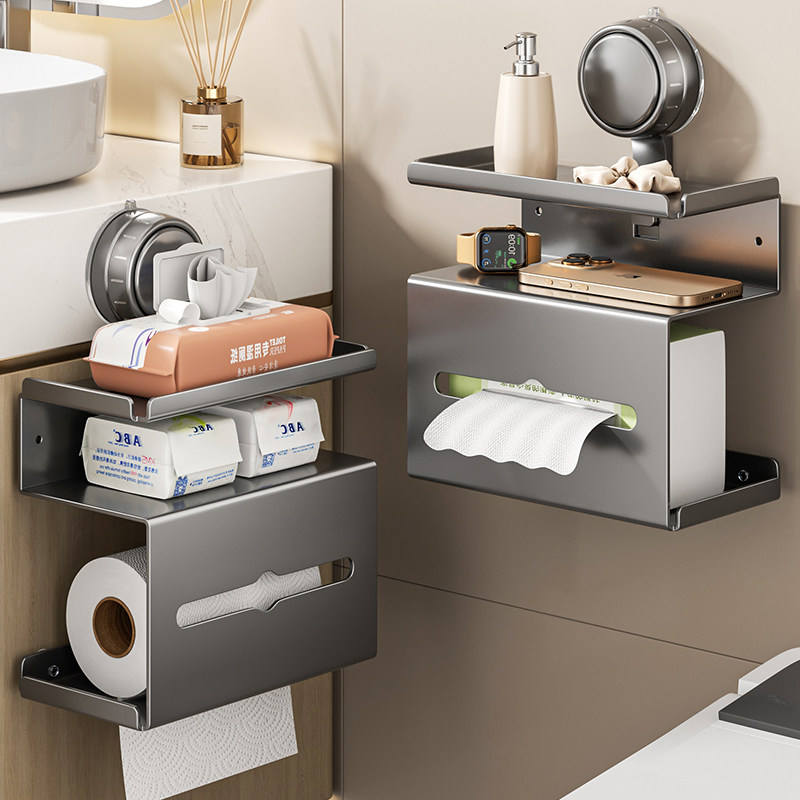 吸盘置物架卫生间卷纸架厕纸盒厕所纸巾盒壁挂浴室洗手间放置盒筒