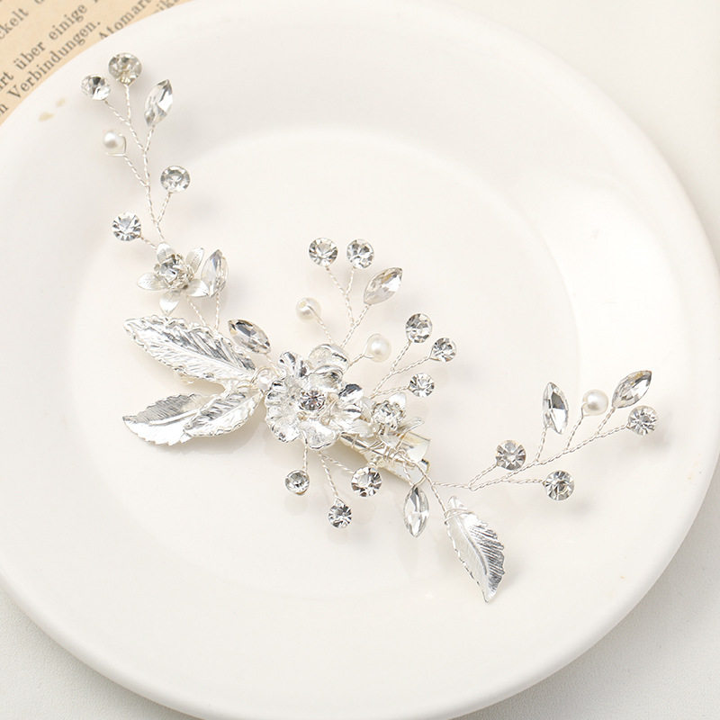团铭新款叶子手工发夹头饰 儿童表演水钻发饰 新娘礼服侧边夹配饰