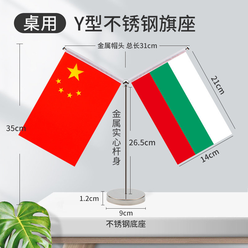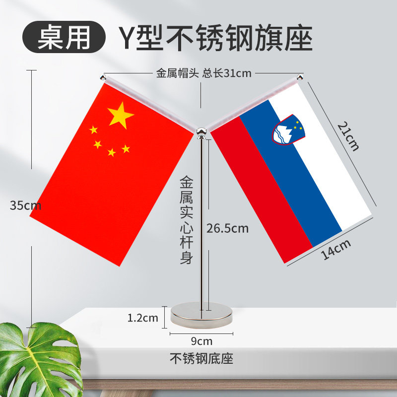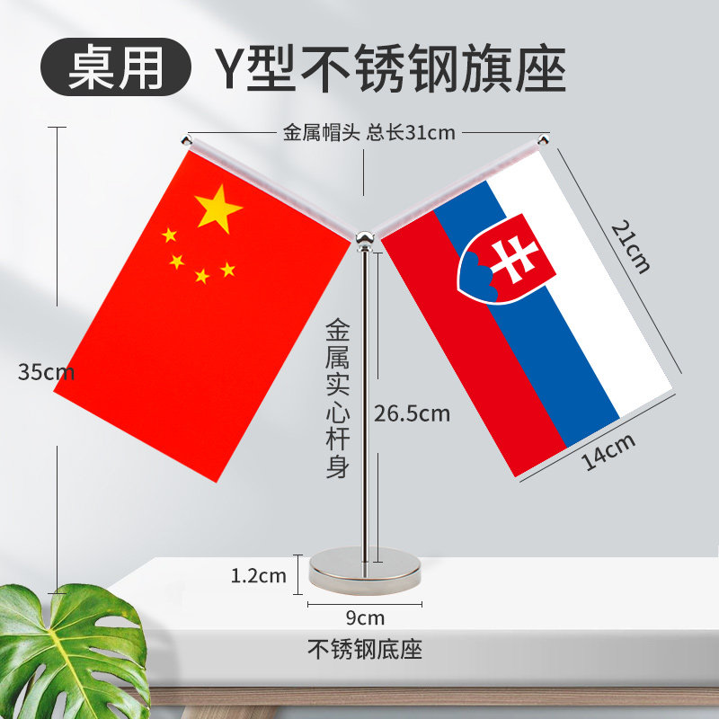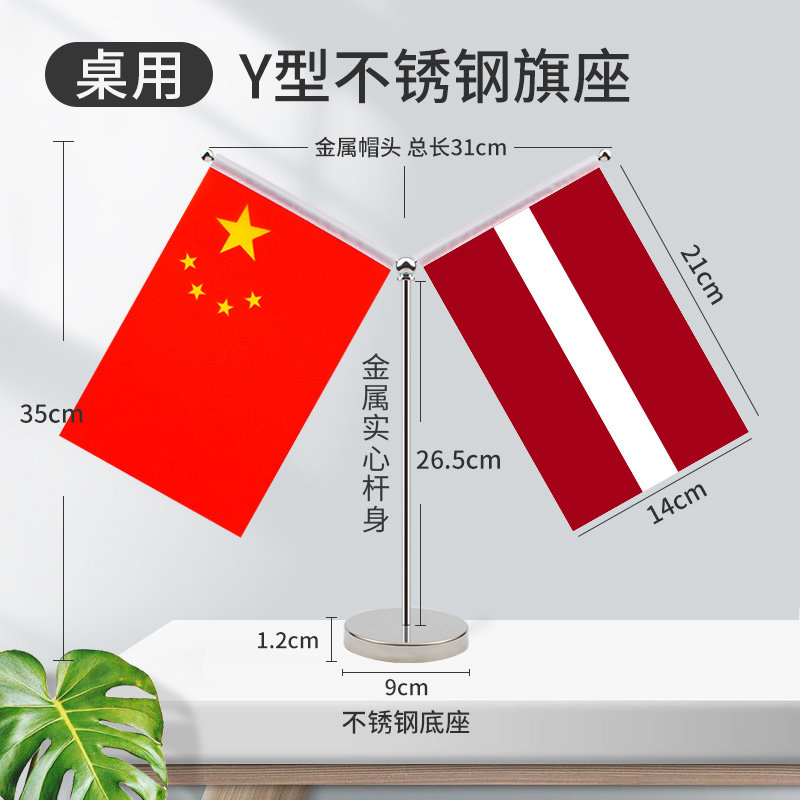 不锈钢Y型桌旗全球200国贡缎全球中国谈判签约字装饰办公室摆件