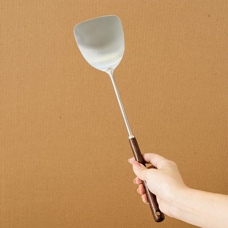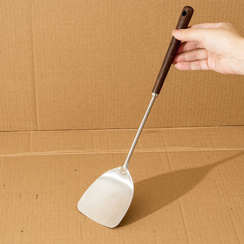 304不锈钢迷你小锅铲全钢长柄胡桃木一人食