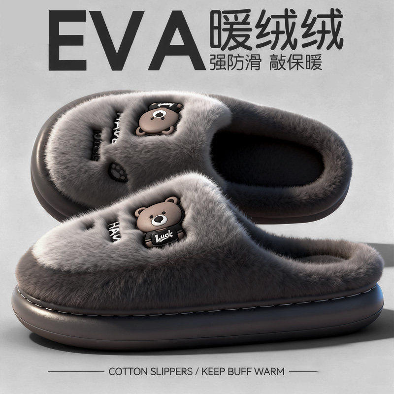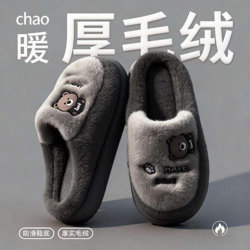 棉拖鞋男款秋冬季2025新款室内家居防滑厚底毛毛绒保暖男士拖鞋女