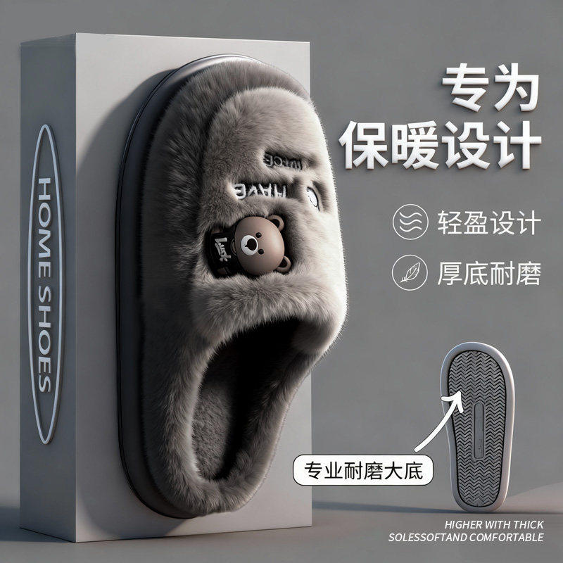 轻臣冬季棉拖鞋女款2026新款秋冬防滑厚底保暖情侣毛绒毛毛拖鞋