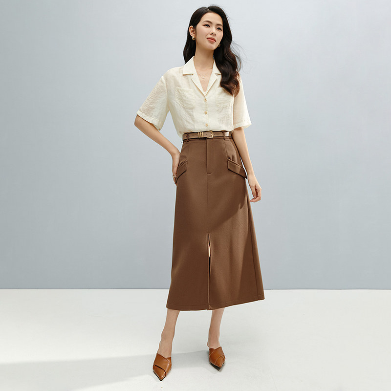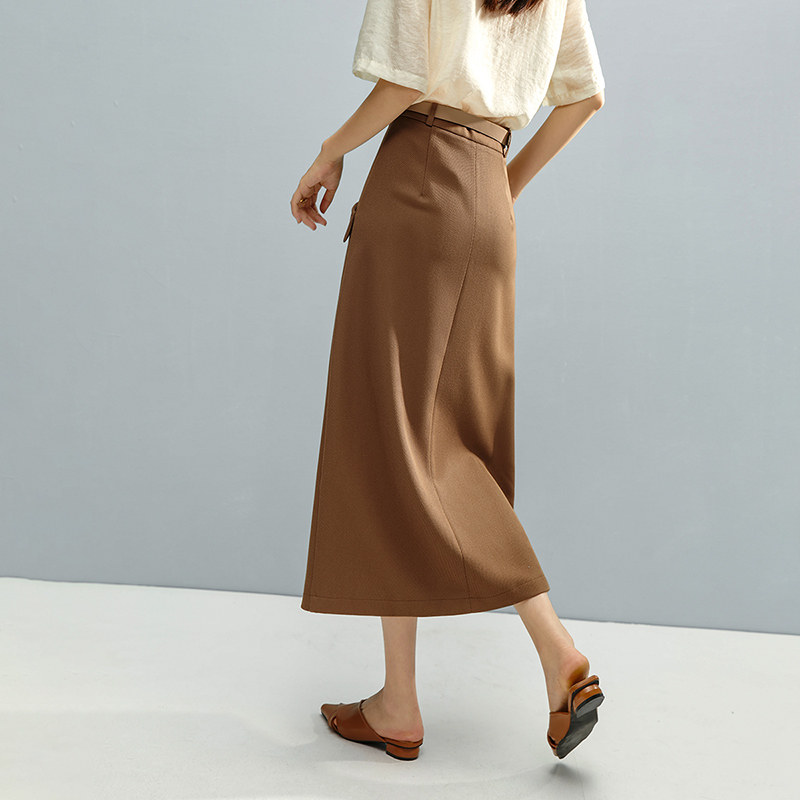 COCOBELLA设计感高腰通勤OL遮胯半身裙西装裙过膝毛呢长裙HS613-2