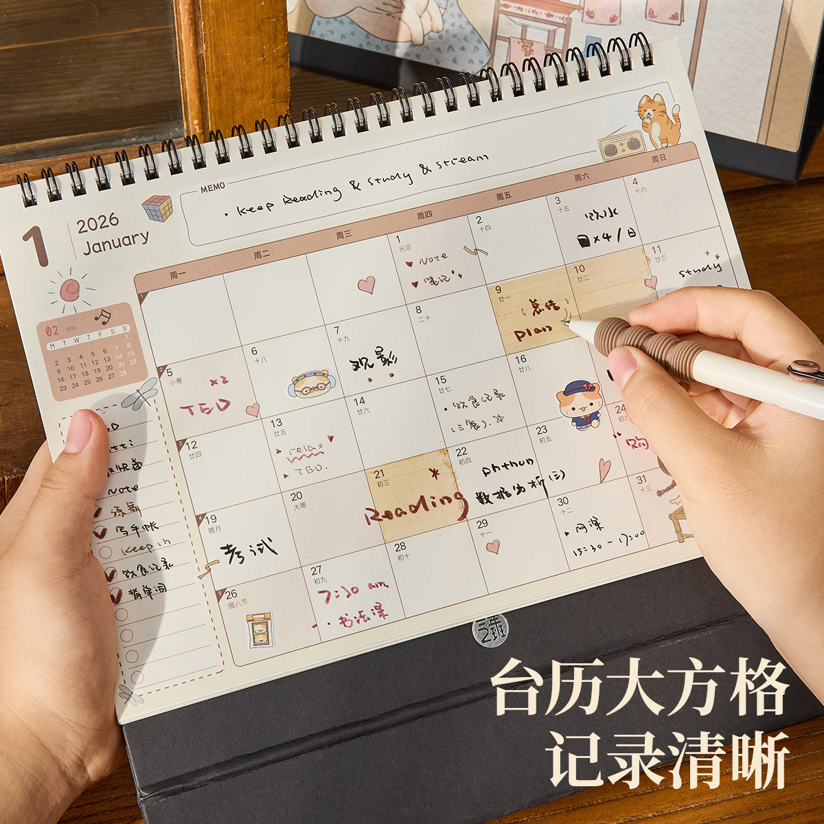 三年二班 麻球台历2025年新款日历高颜值计划本学生国风复古桌面摆件自律打卡本办公室备忘录月历礼物2026年