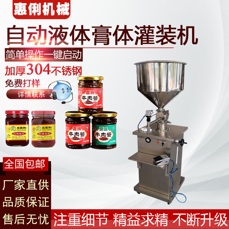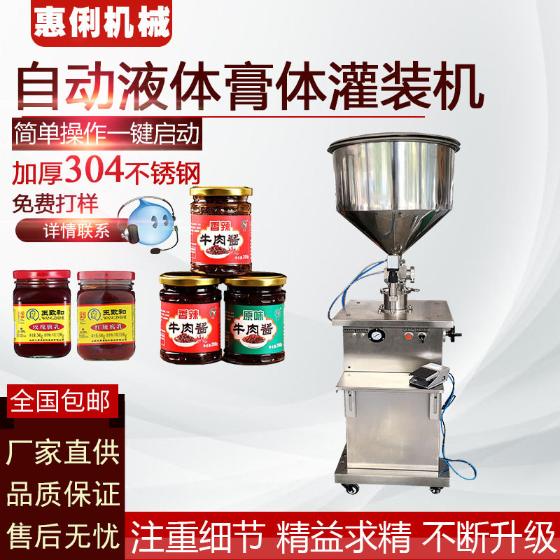 半自动卧式搅拌灌装机 牛肉酱火锅底料蒜蓉酱带颗粒辣椒酱灌装机