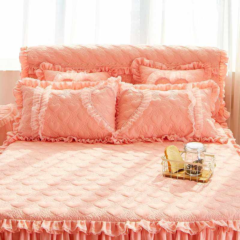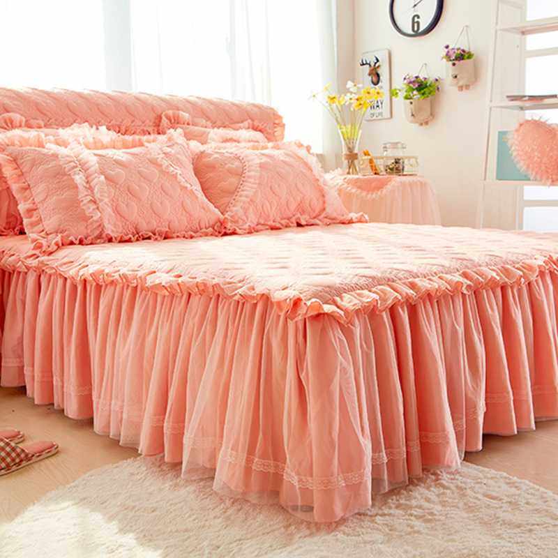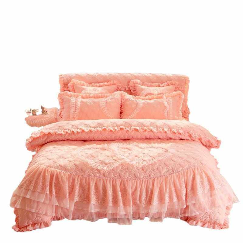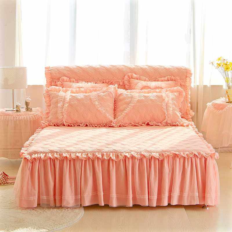 公主风夹棉床裙婚庆四件套大红喜庆结婚床上用品加厚床罩蕾丝花边