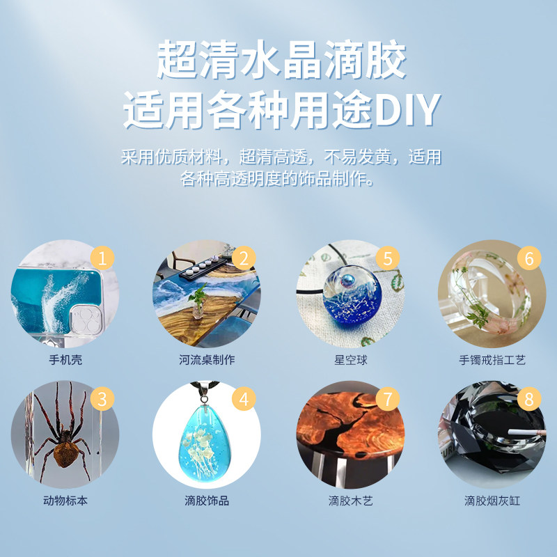高清透明D-608水晶滴胶河流胶桌面填充补漏环氧树脂ab胶胶手工diy手机壳灌封标本泡沫工艺品饰品手镯硬胶慢干
