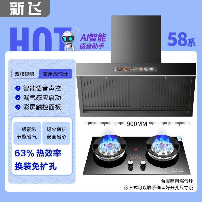 新飞抽油烟机燃气灶组合烟灶套装两件套侧吸双电机油烟机厨房家用