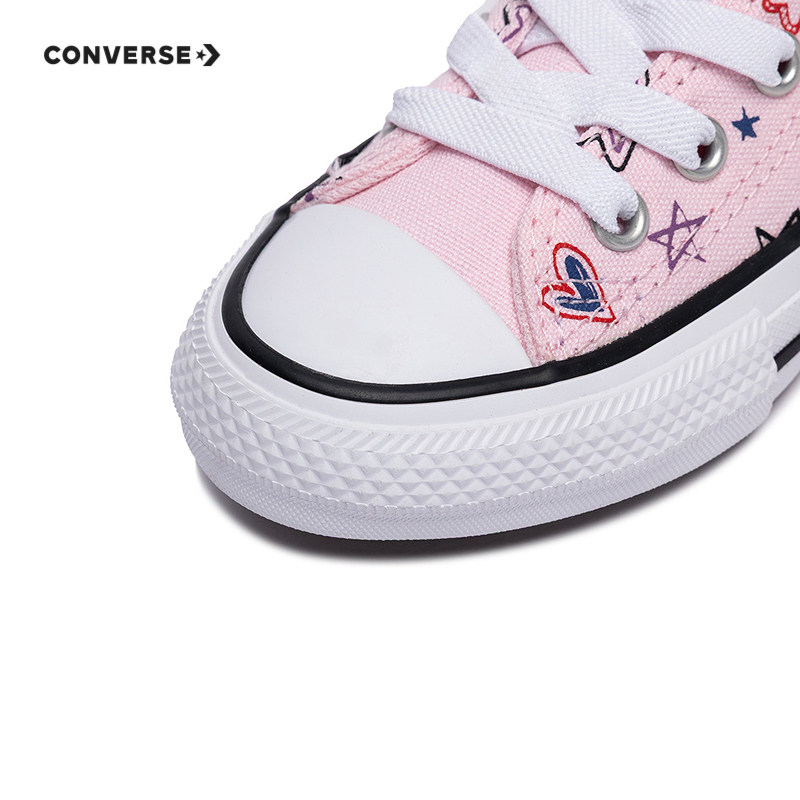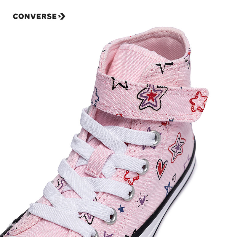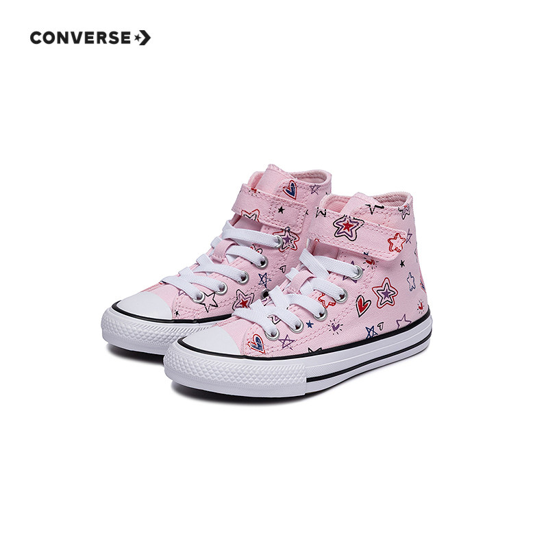 匡威童装女童运动鞋冬季新款高帮帆布鞋满印星星魔术贴休闲鞋