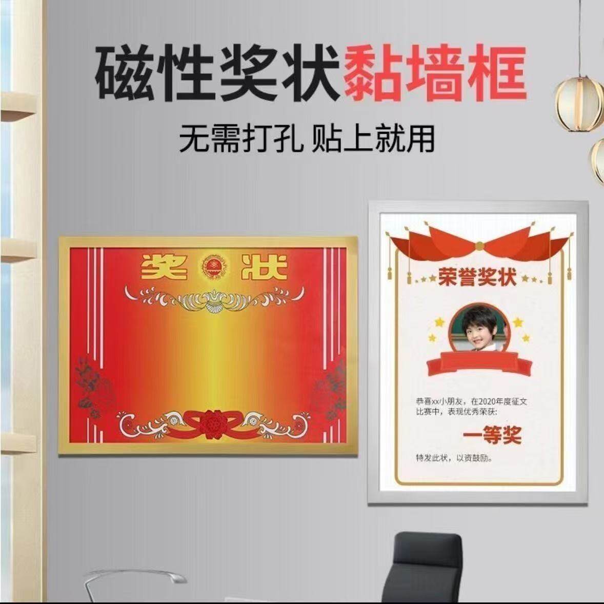 画框装裱儿童磁吸相框奖状展示框免打孔a4美术挂墙收纳8K磁力墙贴